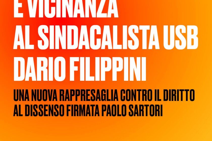 Massima solidarietà e vicinanza al sindacalista USB Dario Filippini, destinatario di una multa da centinaia di euro solo per essere stato tra i promotori di una manifestazione di piazza, svoltasi peraltro in modo del tutto pacifico in Piazza Paolo VI il 30 dicembre scorso dopo essere stato preavvisato alla Questura.